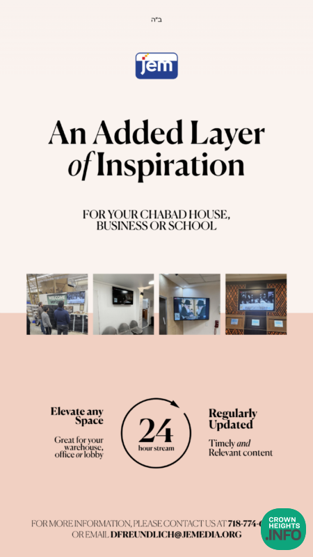“Whenever people come into the office, they are pleasantly surprised, they all sit for a few minutes to watch and it makes our meetings go well. One of the greatest things I put in my office. It’s the most underrated service that you guys have, it should be in all Chabad Houses and Lubavitcher-run businesses, it’s a no-brainer.” – Yechiel “Mike” Jaffe, Jaffe Capital, NY
