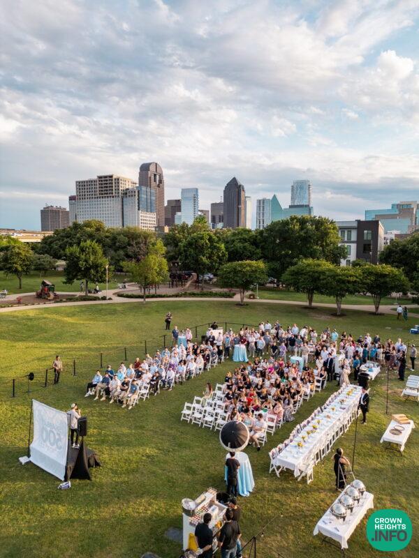 Griggs Park, a natural oasis nestled in Dallas’s city center, hosted a historic display of Jewish Pride as 500 young Jewish Professionals gathered for a grand Shabbat dinner. Organized by The Intown Chabad, The mega Shabbat took place at the iconic public park in the heart of Dallas showcasing the community’s strength in the current climate.