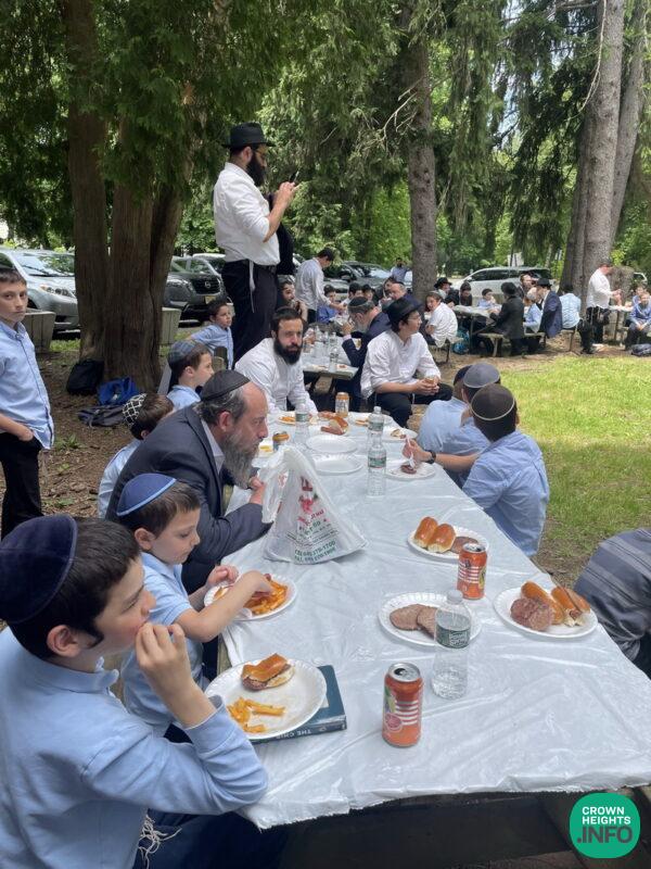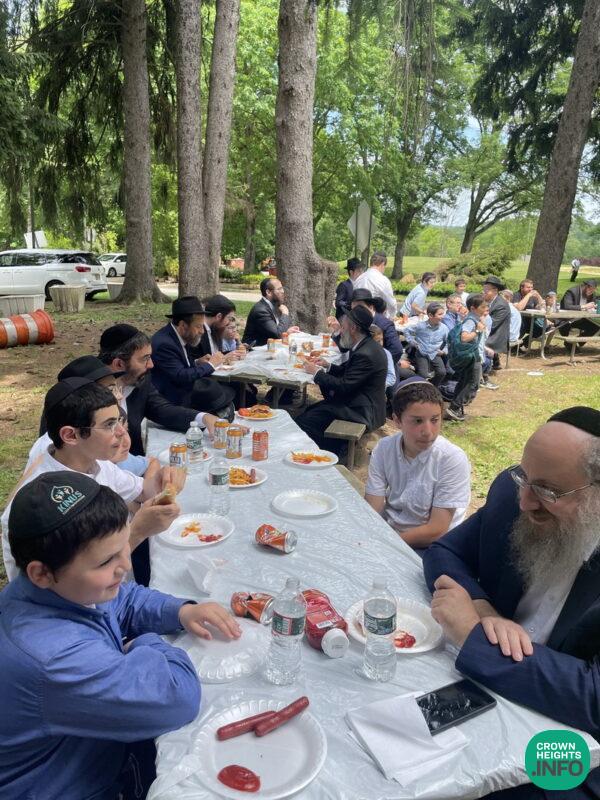 The sun was shining brightly with a cool breeze in the air – the perfect weather for the annual Father-Son BBQ at the Cheder Lubavitch Morristown. The Berger Auditorium was packed with fathers and sons learning b’chevrusa. There were options available that included a sicha from the Rebbe, ma’amer from the Alter Rebbe and stories from the Frierdiker Rebbe – all material to prepare for the upcoming yomtov, Shavuos. Afterwards, everyone moved outdoors to attend a delicious BBQ picnic on the grounds of the Rabbinical College of America.