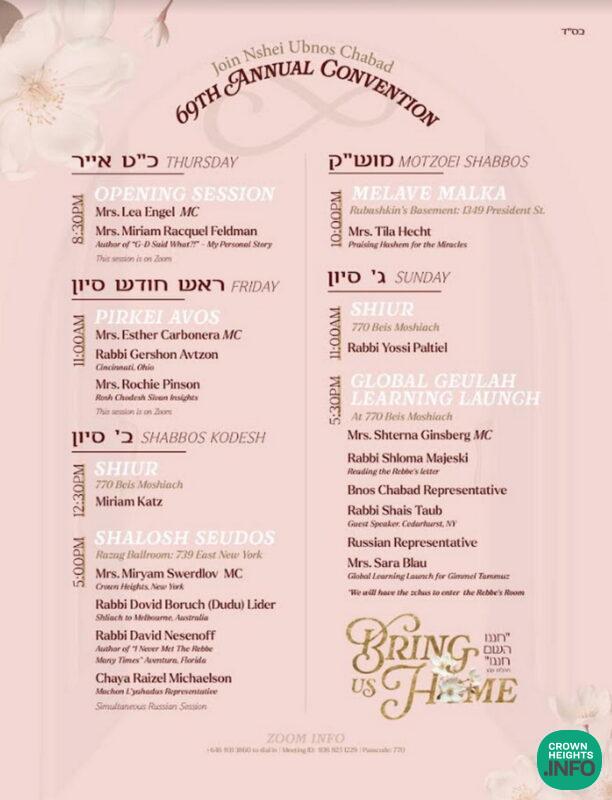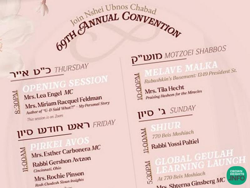 The 69th Annual N’shei Chabad Convention will be talking place in Crown Heights this year, with a complete schedule of events published for all.