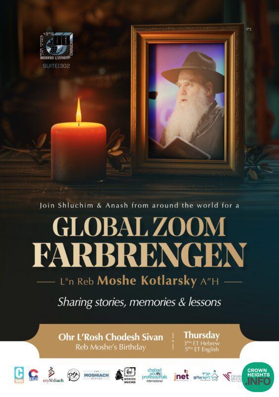 Shluchim and Lubavitchers from around the world are invited to join a special ZOOM FARBRENGEN In honor of Rosh Chodesh Sivan, erev Shabbos Achdus, and Reb Moshe A”H’s 75th Birthday.