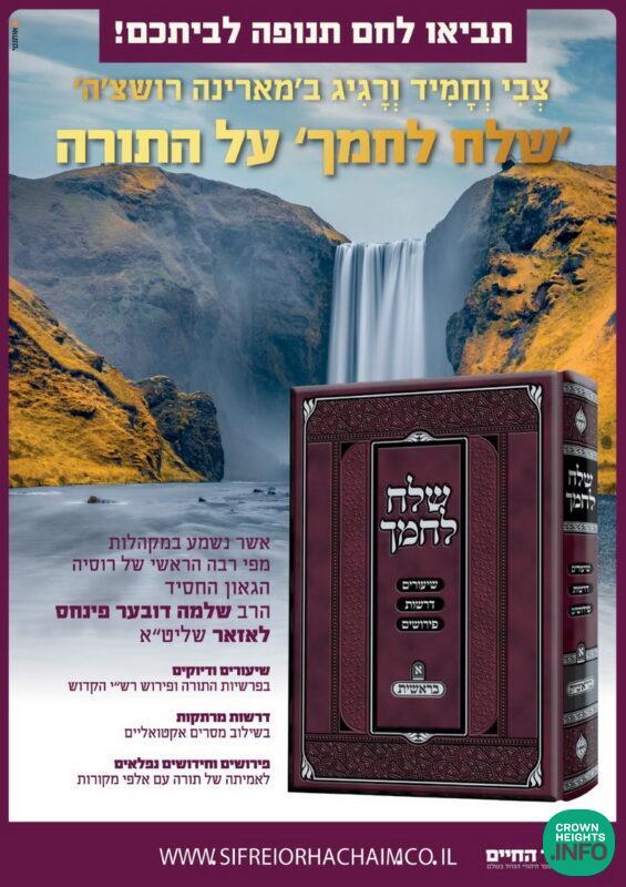 Good news arrived for those who toil in Torah and Chassidus. “Shlach Lachmecha” (Cast Your Bread) – a new book hot off the press that is full of shiurim and explanations on the weekly Torah portion as well as Rashi’s commentary, interwoven with actual lessons, backed by thousands of sources. Words of Torah that rang in Moscow’s central Marina Roscha Shul from hagaon hachassid Rabbi Berel Lazar shlit”a, Chief Rabbi of Russia.