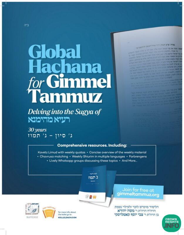 The communal hachana program will begin today Monday, 4 Sivan, offered free of charge in preparation for the 30th commemoration of Gimmel Tammuz. This program is dedicated to the memory of Rabbi Moshe Kotlarsky OBM, Vice-Chairman of Merkos Linyonei Chinuch.