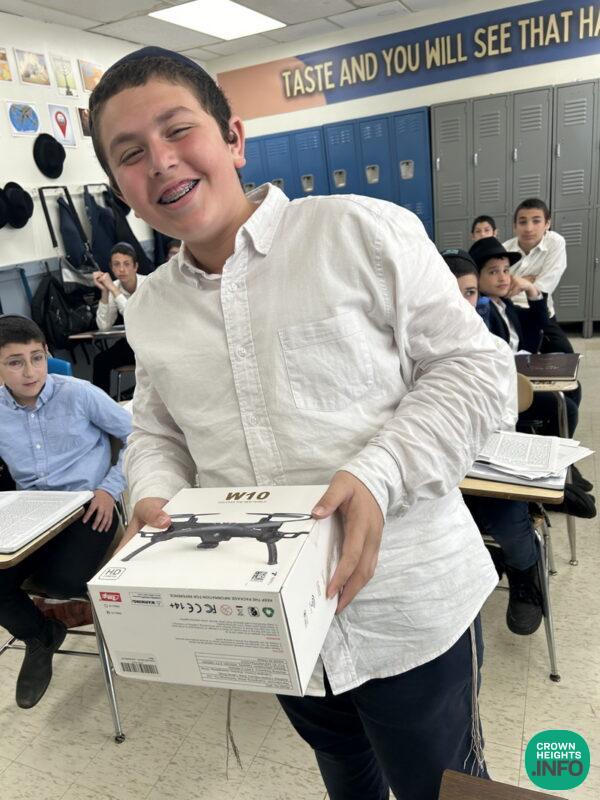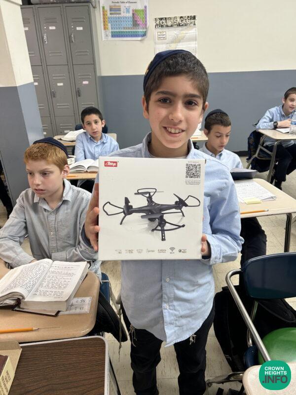 Mrs. Chana Burston, Shlucha to Orange County, NY and a Cheder parent shares: “The Chumash and Gemara Champ program was a motivating and exciting way to inspire our children to progress tremendously in Torah learning. Our sons Asher Zelig and Yaakov, grades 7 and 3, spent many hours enthusiastically learning, proud of their accomplishments and excited to receive unique and meaningful prizes. Yaakov has been using his set of Mishnayos, and Asher Zelig is proud to own the large Chitas he earned, as well as having a fantastic drone.