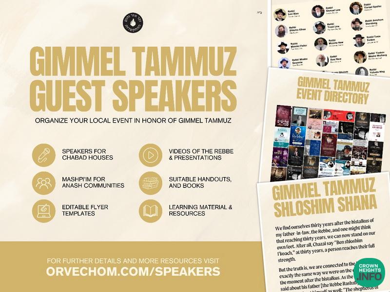 That is why this year, Vaad Or Vechom Hahsikashrus has launched a resource website to assist communities in organizing a local Gimmel Tammuz event. The site includes lists of available speakers for Anash communities and Chabad houses, flyer templates, video presentations, ready-to-go programs, and much more.