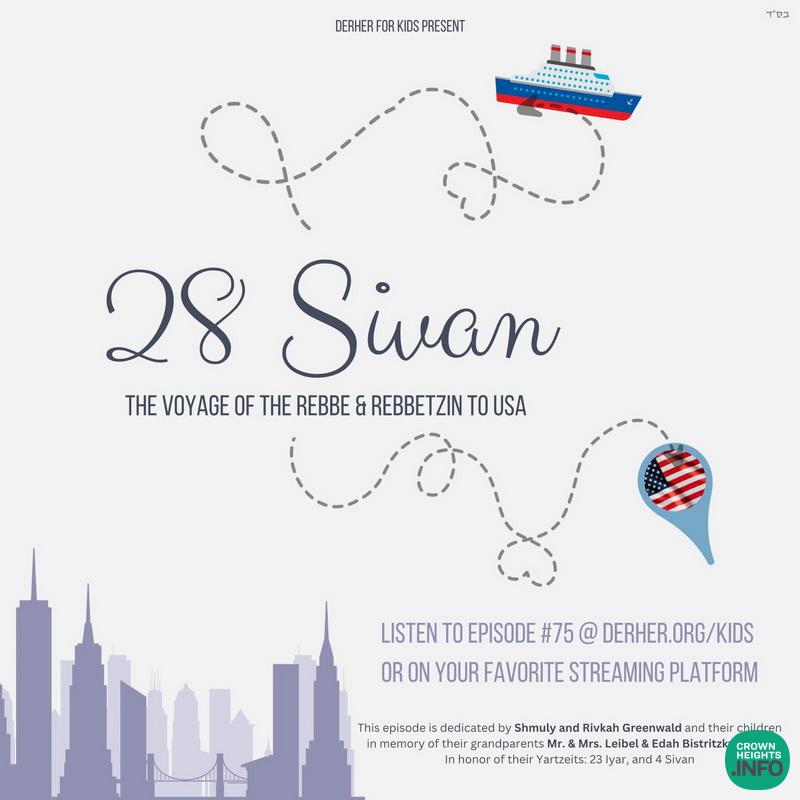 In a new Derher for Kids episode, we follow the Rebbe and Rebbetzin’s footsteps from the outbreak of World War ll, through the day of 28 Sivan, 5701- almost two years later- when the Rebbe and Rebbetzin safely stepped onto the shores of the United States.