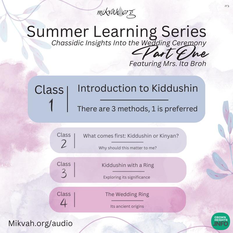 Our first episode is the beginning of a 4-part session featuring Mrs. Itah Broh. Tune in to learn about Kiddushin, its three methods and which method is preferred.