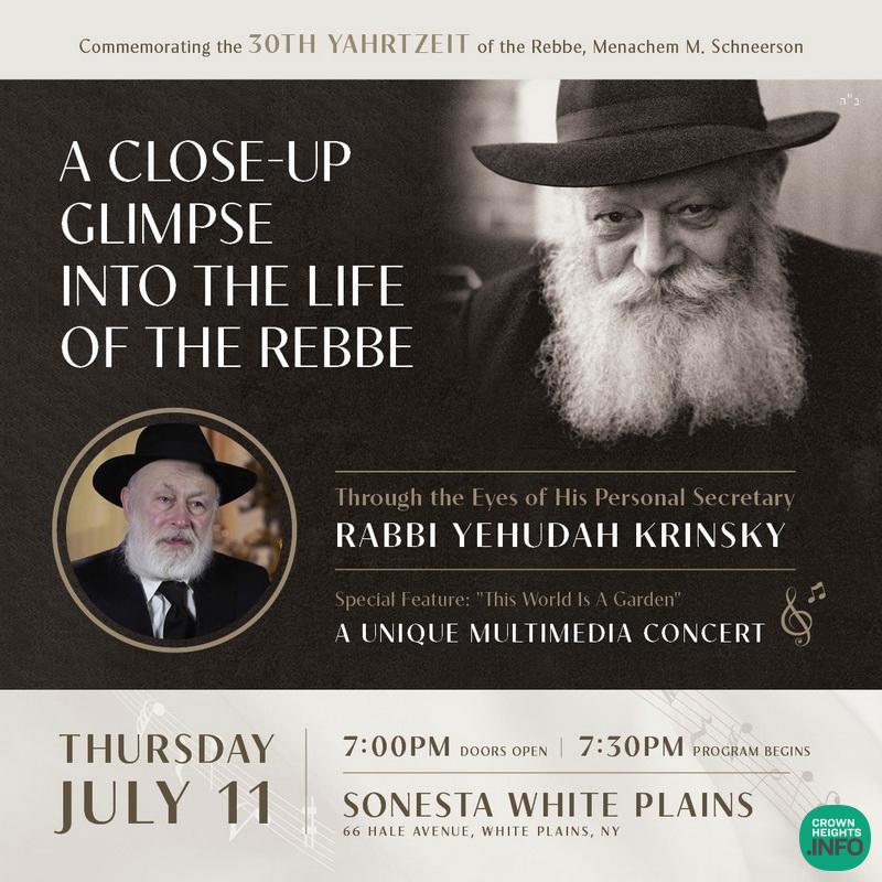 On July 11, over 19 Jewish communities of Westchester will gather for an evening of unity, prayer and music as they mark 30 years since the passing of the Rebbe — Rabbi Menachem M. Schneerson, of righteous memory, the most influential rabbi in modern history. The event, “An Evening Honoring The Rebbe”, will take place at The Sonesta Hotel in White Plains.