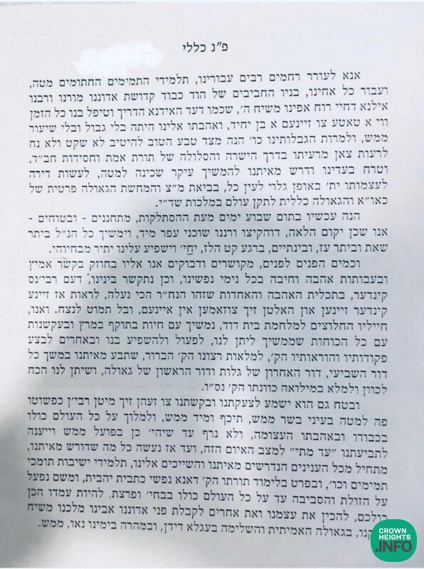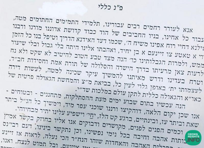 A copy of a Pan Kloli from 5754 that was written and signed after Gimmel Tammuz 30 years ago, specifically by Bochurim, and brought to the Ohel at the conclusion of the Shiva on their behalf, has been unearthed.