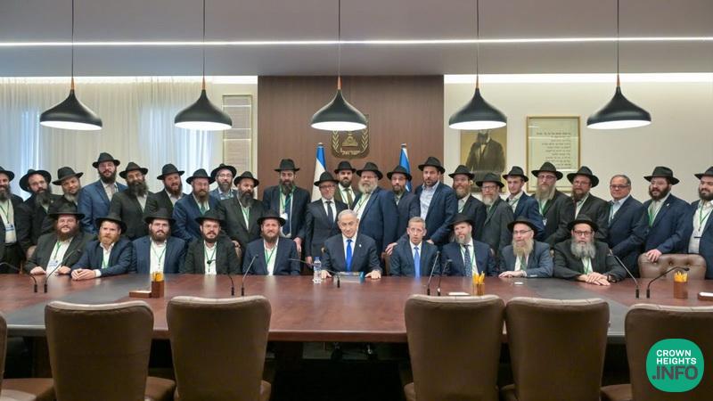 Prime Minister Benjamin Netanyahu on Wednesday, July 10 2024 at the Prime Minister’s Office in Jerusalem met with Chabad emissaries from Israel and around the world to mark 30 years since the passing of the Lubavitcher Rebbe.