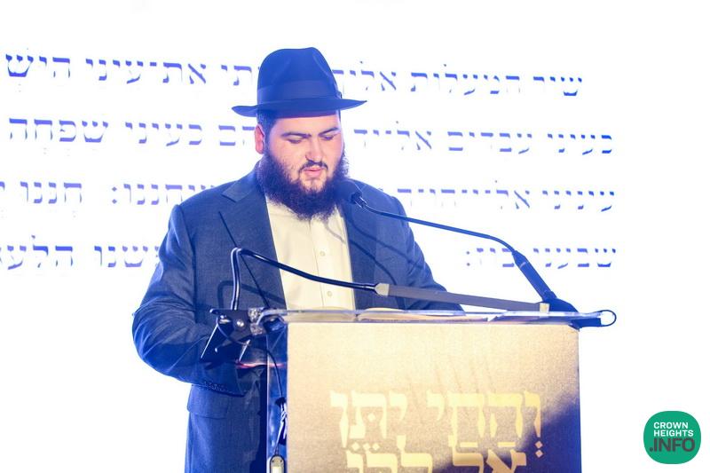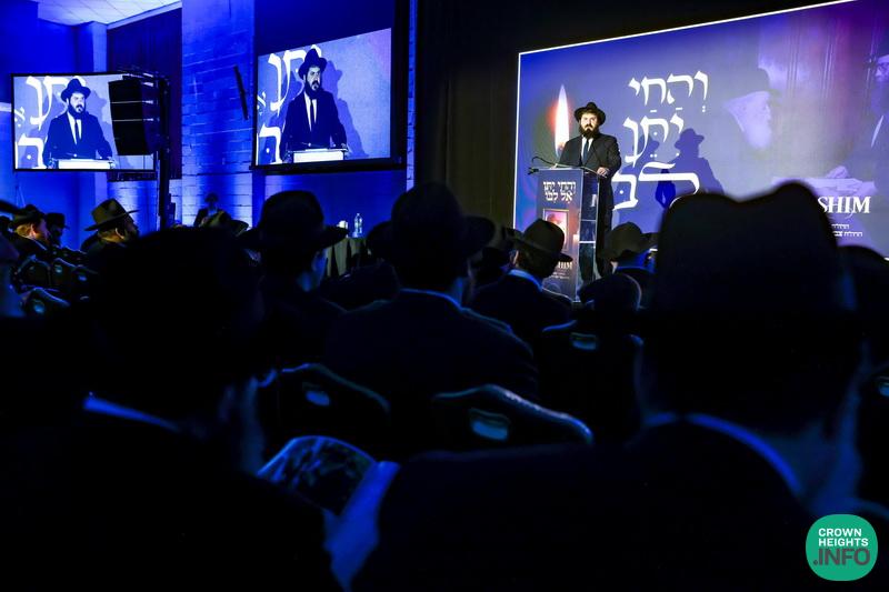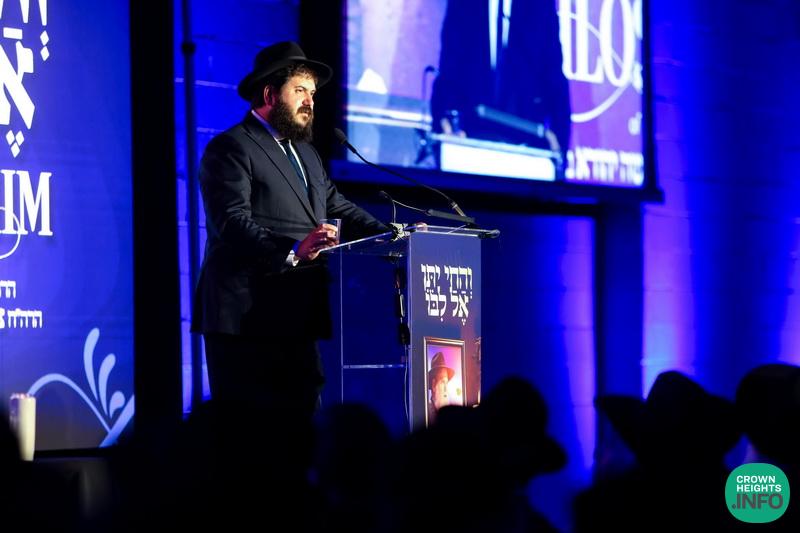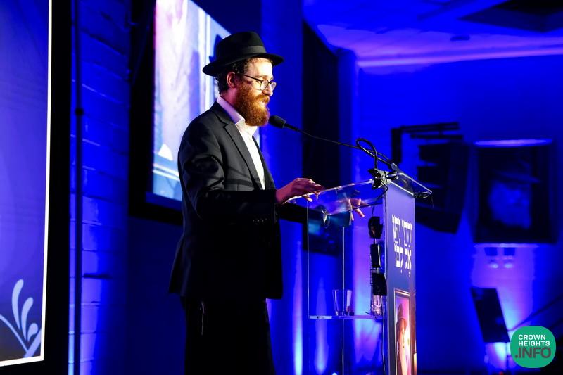 Sruly Kotlarsky, the son of Rabbi Moshe Kotlarsky, spoke about his father’s tremendous Hiskashrus and introduced a video of the Rebbe.