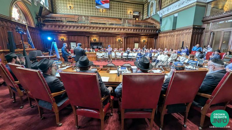 Last Wednesday, the Connecticut State Capitol hosted a unique tribute to the Lubavitcher Rebbe, marking his 30th yahrtzeit. Representatives from the state’s 26 Chabad centers gathered in the Senate Chambers in Hartford, where elected officials spoke about the Rebbe’s continued impact on the state and its Jewish community.