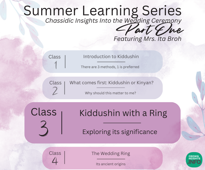 Our Summer Learning Series, which delves into Chassidic insights on the Wedding Ceremony, continues with its third class featuring Mrs. Ita Broh.