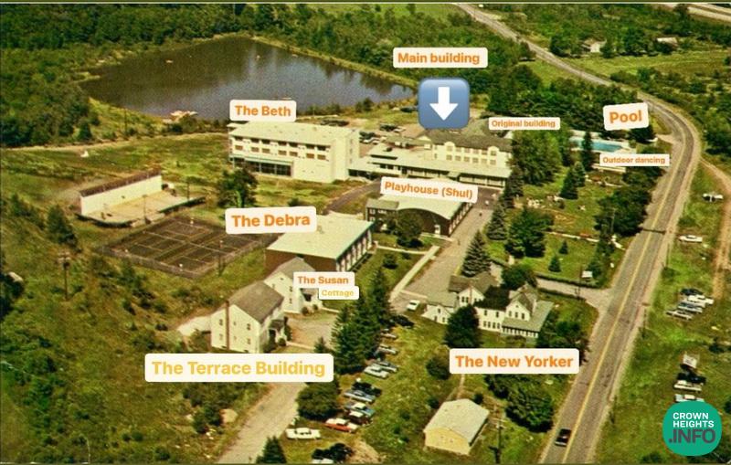 Bird’s-eye view of Klein’s Hillside Circa 1950s: (Rare Picture) Before The Debra was built, there was a tennis court. This picture was taken before the main building was remodeled and The Playhouse (The Shul) had several structures. The New Yorker (Eric’s house) was originally a much taller cluster of buildings. You’ll also notice the uniformity in the design of all the buildings painted with gray roofs. Bottom right corner of the picture you can see the horse stable across the street.