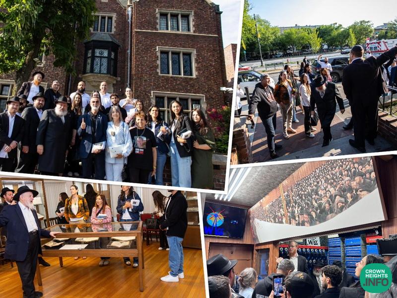The group was welcomed to 770 by Rabbi Chaim Boruch Halberstam and Rabbi Menachem Mendel Eizenbach who brought them to the Rebbe’s room and gave them a tour of the WLCC broadcast room and the main shul of 770.
