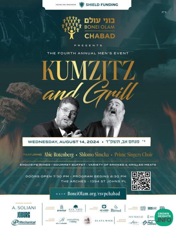 Be there for a fabulous evening featuring incredible musical performances by Abie Rotenberg and Shlomo Simcha, a fantastic buffet including smoked and grilled meats, an open bar, and an inspiring atmosphere of unity and support.