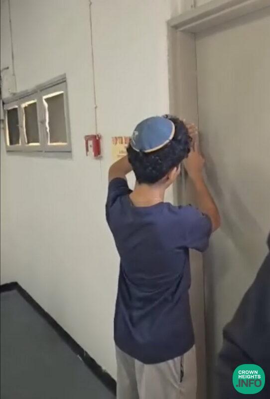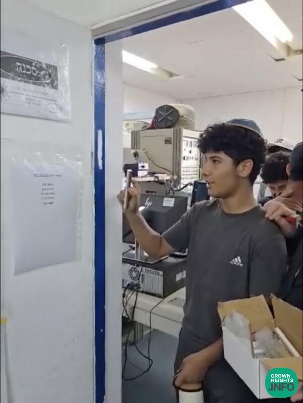 As a high-security airbase in Southern Israel, the Ramon base is difficult to visit. “The bus driver didn’t believe they were going to let us in until it actually happened,” recounted Shneur Elberg, a counselor on the trip. Working together with Tzvi Rappaport, who has installed over 3700 mezuzahs for soldiers since the war began, they were able to arrange the visit, complete with security and passport checks.