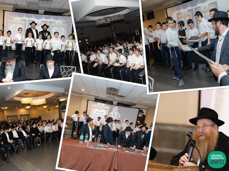 The emcee invited Rabbi Itche Mishulavin to lead the Rebbe’s Kappitel, followed by Birkas Cohanim from Rabbi Mendel Hendel , Menahel Kloli of Ohr Menachem and its continuum of mosdos. Rabbi Mendel Yusewitz , Menahel, expressed joy at completing a year of true growth, marked by tremendous Limud HaTorah, Kiyum Mitzvot B’Simcha, and middos tovos. He presented each student with their end-of-year certificate, highlighting the unique praise (Shevach) chosen by their Melamed to define their individual light and contribution to the class.