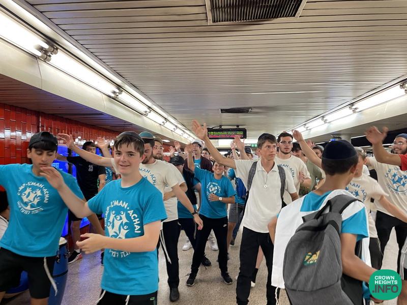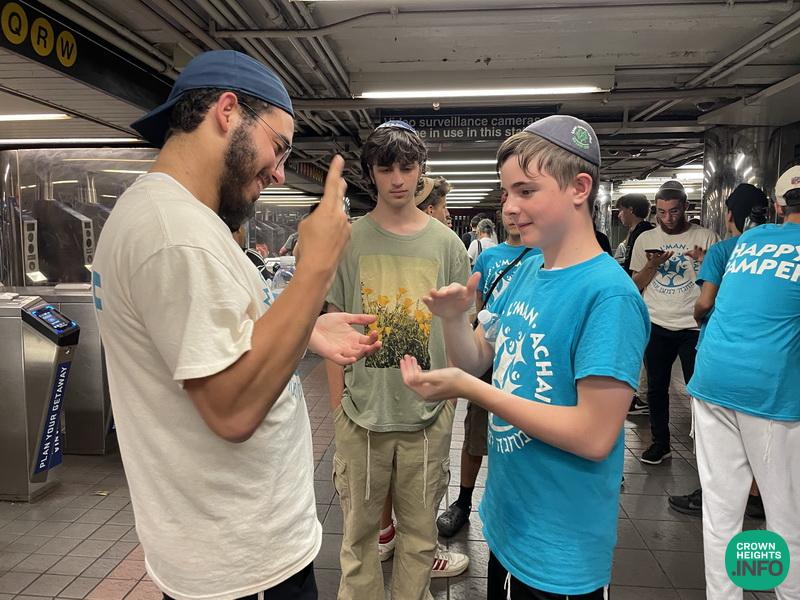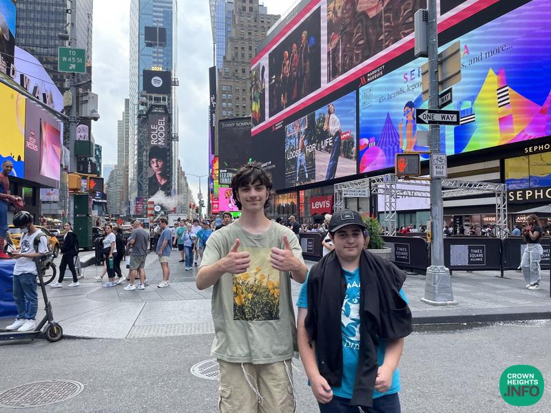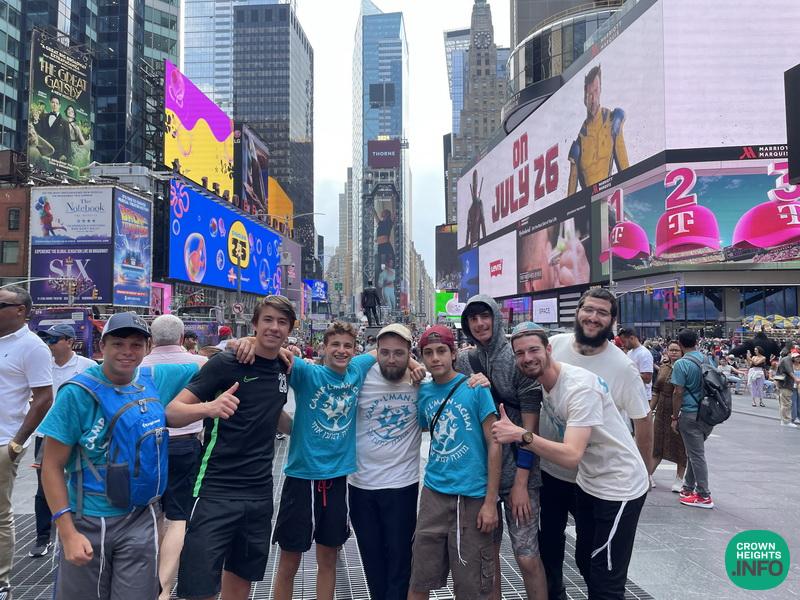 The group then visited Times Square, where they danced on the Big Red Stairs, making a huge kiddush Hashem, and garnering cheers and videos from many onlookers. The campers continued with helping the surrounding crowds put on tefillin, getting around 30-40 people to put on tefillin. This was a huge feat, since many of the teens have only recently learned about Tefillin themselves.