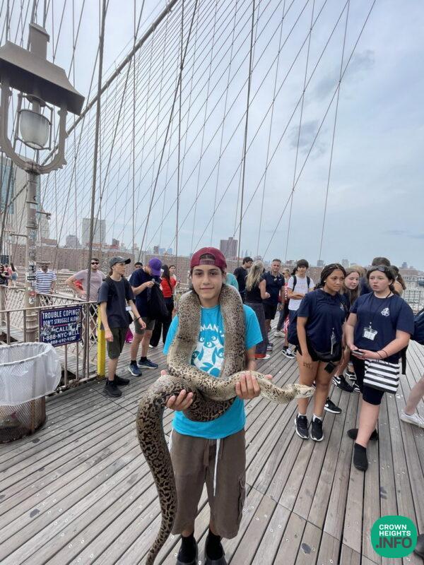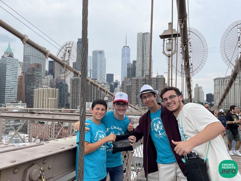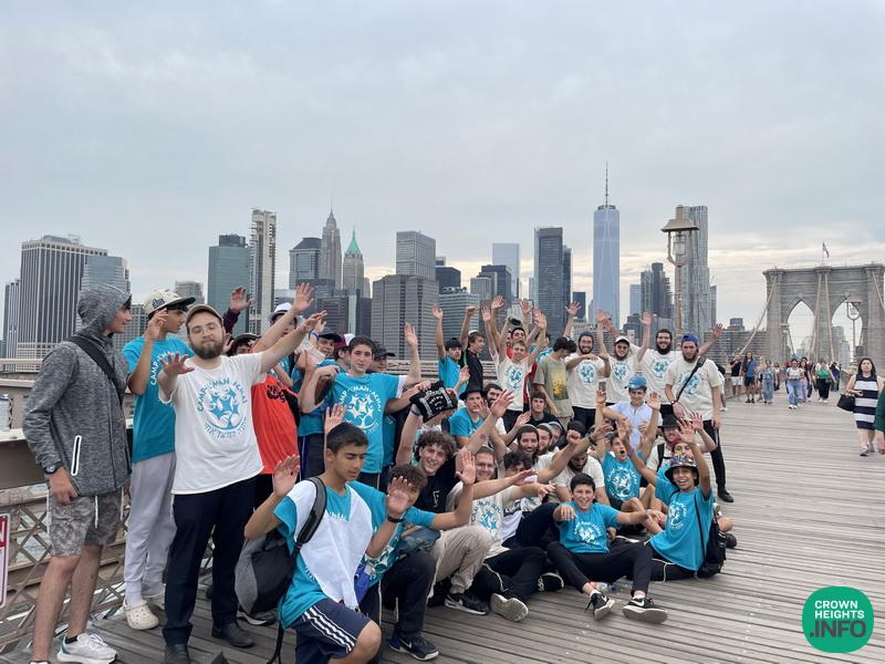 After breaking for lunch at a Kosher Café in Midtown Manhattan, the group then walked the Brooklyn Bridge getting to view the beautiful Manhattan skyline. They again danced on the Brooklyn Bridge before heading back to Crown Heights for a tour and scavenger hunt in many kosher stores.