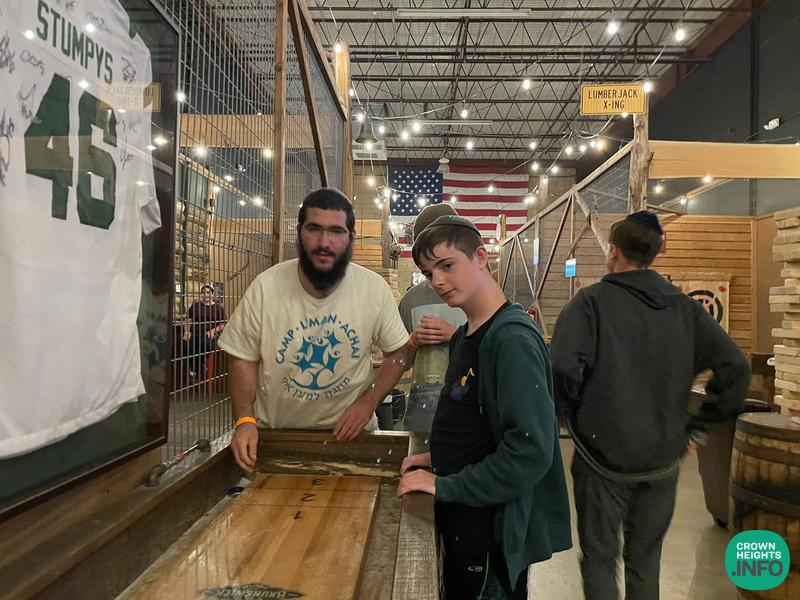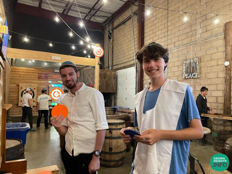 The Teen Division of Camp L’man Achai embarked on an awesome two-day trip to New York City. Travelling on air-conditioned coach buses, their first stop was “ax throwing”, where they competed in games, and some even had the skill to hit a bullseye!