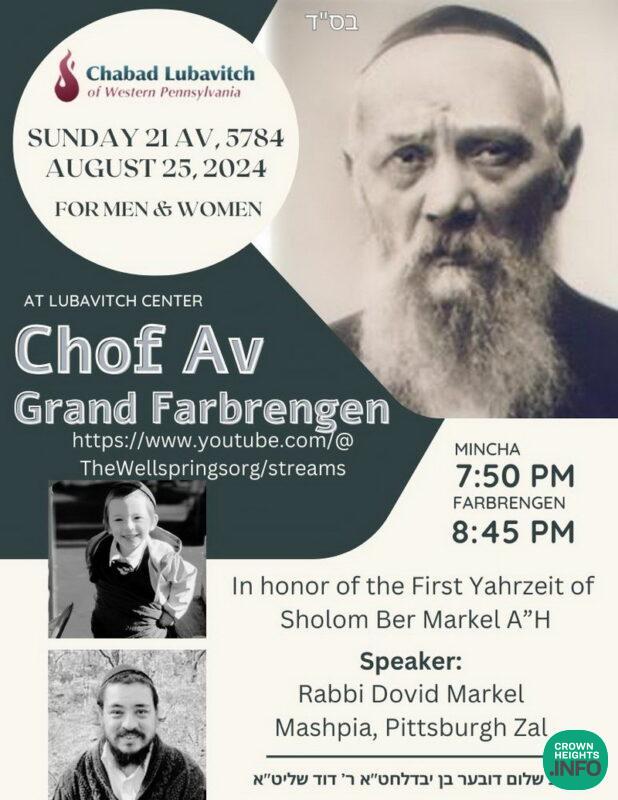 Sponsors are still needed for these events. To help sponsor these events, you can email mendelmarkel@lubavitchcenter.org or go to http://www.lubavitchcenter.org/donate (put “Chof Av 5784” in memo)