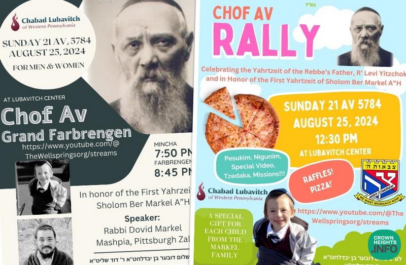 Sholom Ber Markel of Pittsburgh, PA, a 4 year old soldier in Tzivos Hashem, tragically passed away on Chof Av 5783. This Sunday, two special events are being held in Pittsburgh in honor of his first Yahrtzeit.