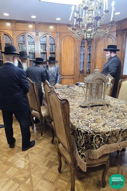 After presenting the Rebbe with his new book, “Shlach Lachmecha,” the guest and host shared a toast and exchanged New Year blessings.