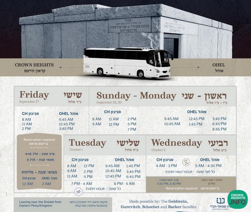 The enhanced Tishrei Schedule for the Bus to the Ohel has been released, providing daily buses between Crown Heights and the Ohel throughout Tishrei.