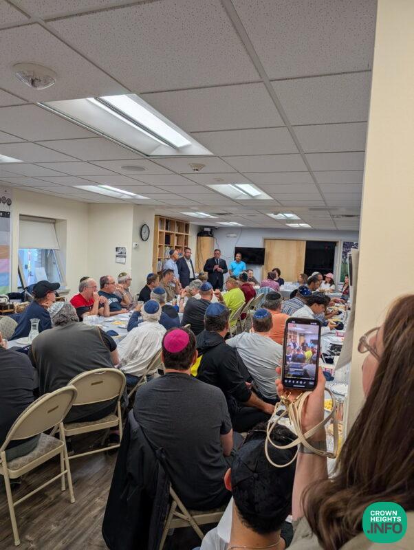 Congressman Esposito visited the tefillin club members and joined them after Jewish prayers were completed. – My hope is that the Congressman (Federal) can put forth federal legislation which stops masked mobs from harassing Jews on college campuses(Title VI) and obstructing public streets (traffic / interstate commerce).
