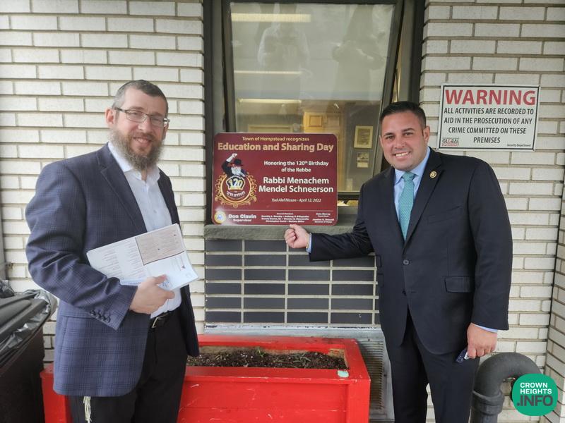 Rabbi Shimon Kramer of Chabad Center for Jewish Life in Merrick, welcomed US House of Representative Anthony D’Esposito as he joined The Tefillin Club at Chabad this past Sunday morning.