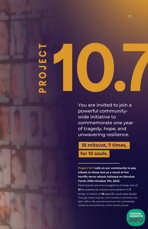 As the first anniversary of the Simchat Torah massacre approaches, Chabad-Lubavitch emissaries and their communities are preparing to commemorate the tragic loss of over 1,800 lives over the past year. The Special Projects team at Merkos 302, in conjunction with One Mitzvah of The Moshiach Office, has launched Project 10.7 to address this solemn occasion.