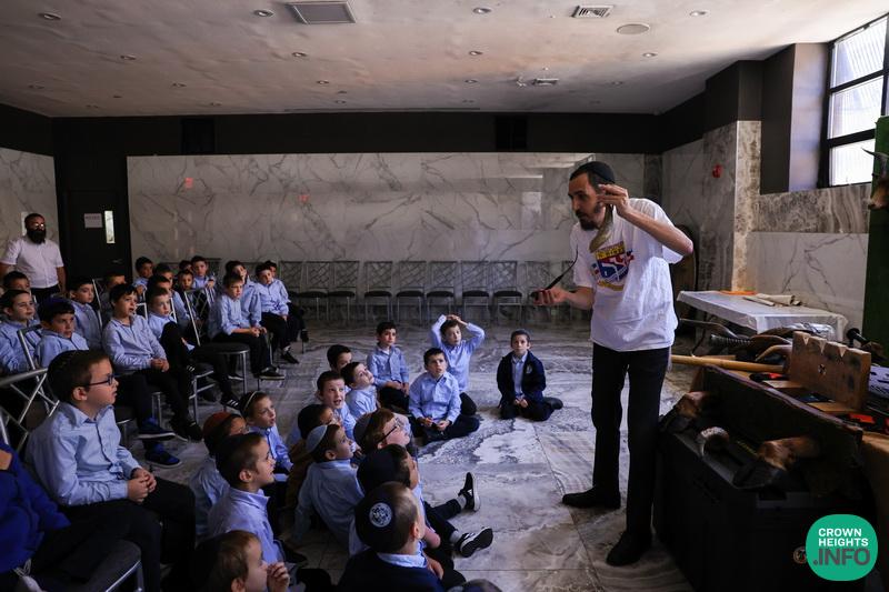 Rabbi Shmuly Turk, Rabbi Yosef Aron and organized their divisions at ULY to participate in the hands-on demonstrations of the Tzivos Hashem Traveling Shofar Factory. Rabbi Moshe Rendler organized the full afternoon for the 7th grade boys.