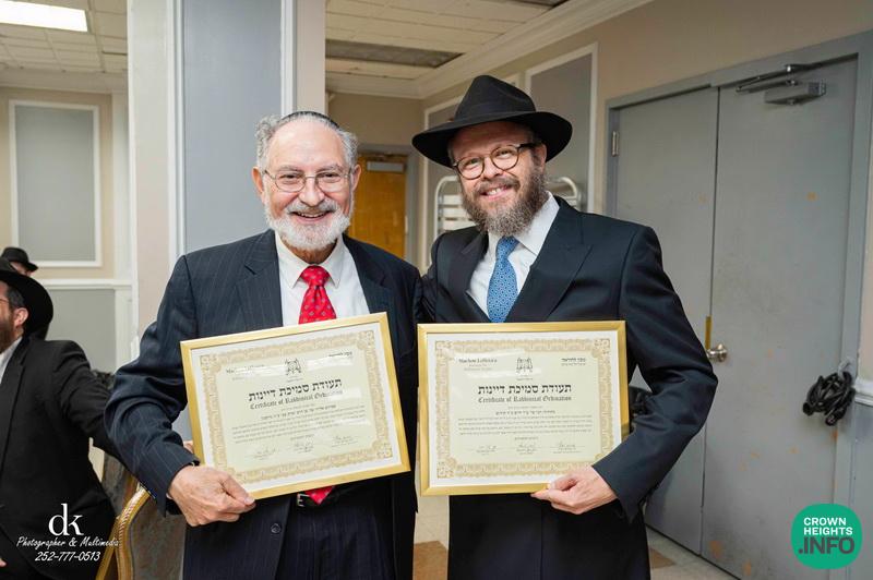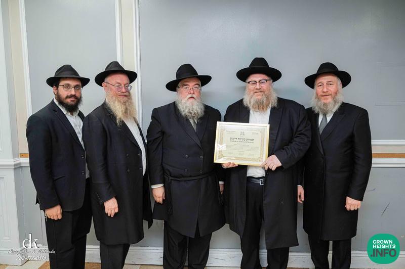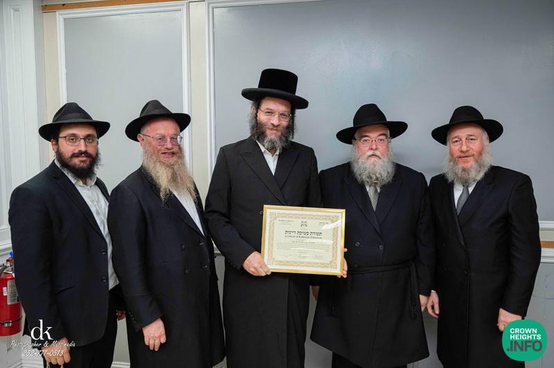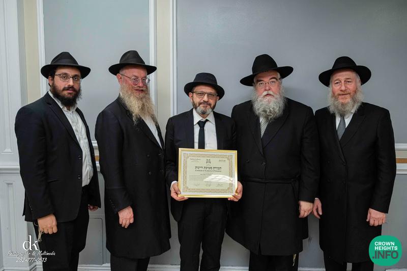 The event, taking place in Crown Heights just before Rosh Hashana, was attended by Rabbonim and anash, celebrating this tremendous milestone and learning achievement of these new Dayanim.