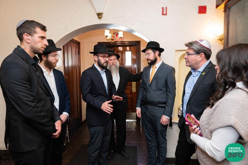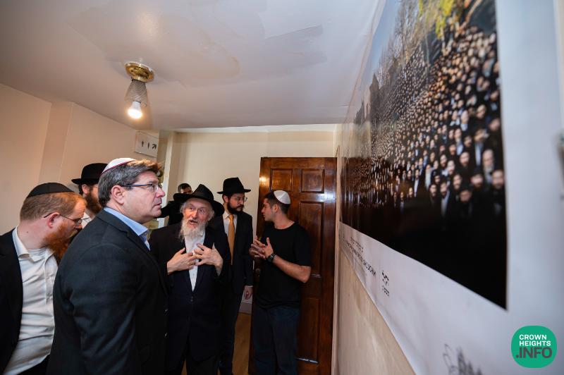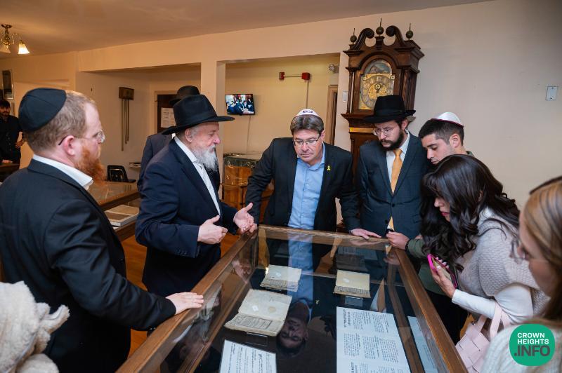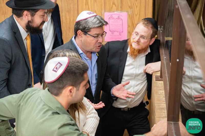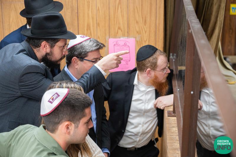In the area of the Rebbe’s room, Rabbi Kuti Feldman explained to the Consul how Chassidim would prepare before entering for Yechidus with the Rebbe, and how it was appropriate to enter the Holy place.