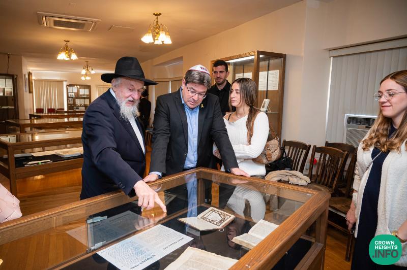 The director of the Chabad library, Rabbi Shalom Dovber Levin, gave a comprehensive overview of the exhibition hall. The consul was deeply impressed by the historical exhibits related to the Chabad Rebbe and in particular the Rebbe’s personal belongings.
