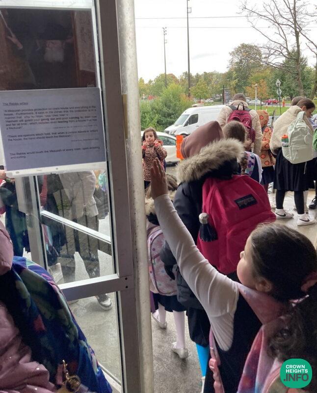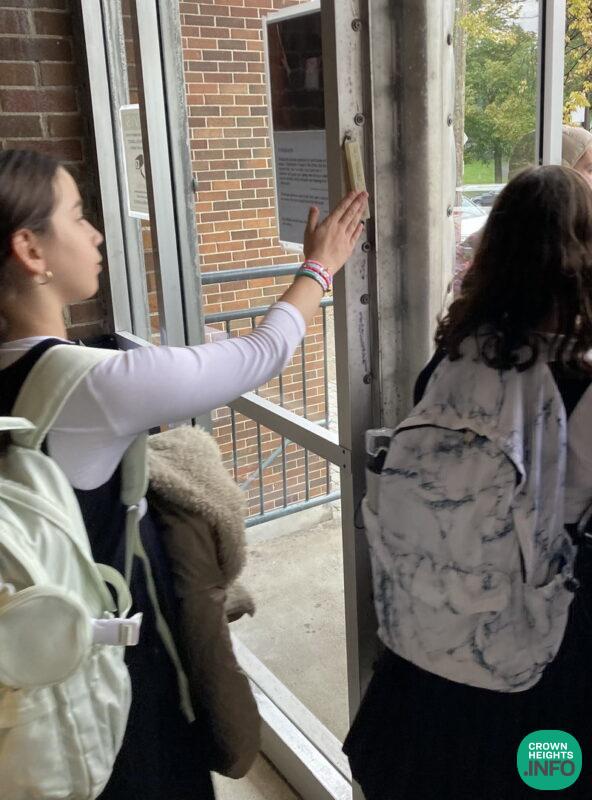 “Over the last year, the Talmidos of Beis Rivkah in Montreal are encouraged and reminded to place their hand on the Mezuzah upon entering and leaving Beis Rivkah, their home, etc. (at least by the front door), which makes one cognizant of Hashem, our Guardian. It does not require any extra time, and helps countless people”, said Rabbi Yosef Minkowitz, dean of the school.