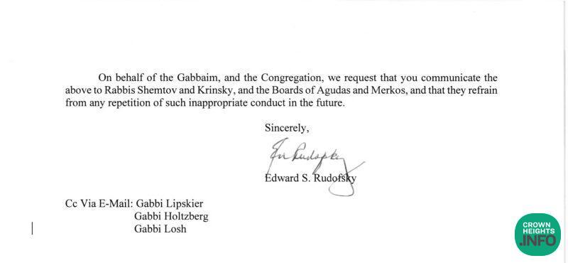 The letter was quickly followed by a press release, written on behalf of the Gabboim and published on a Chabad website, calling out Aguch for their actions.