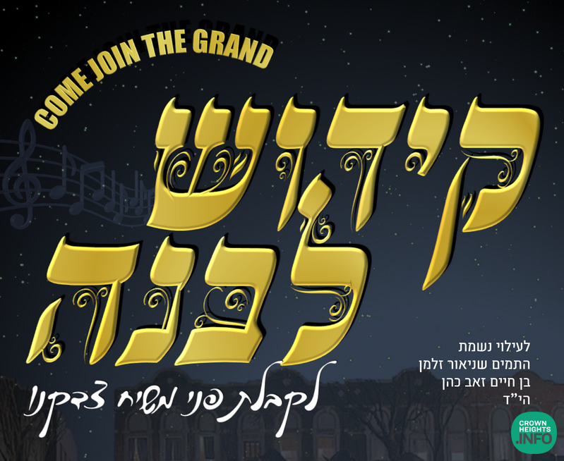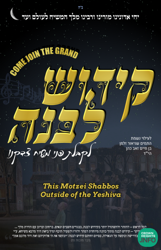 It is to this end, that a generous Chossid has sponsored a raffle of $100 cash, in memory of Shneur Zalman Ben Chaim Zev Cohen HY”D, for the all yeshivos/shluchim/communities that will organize Kiddush Levana in the street of their city.