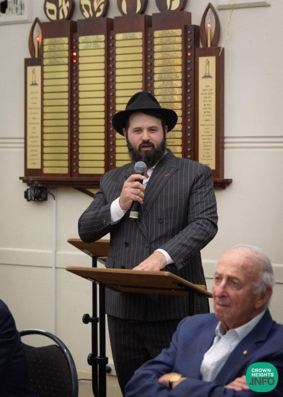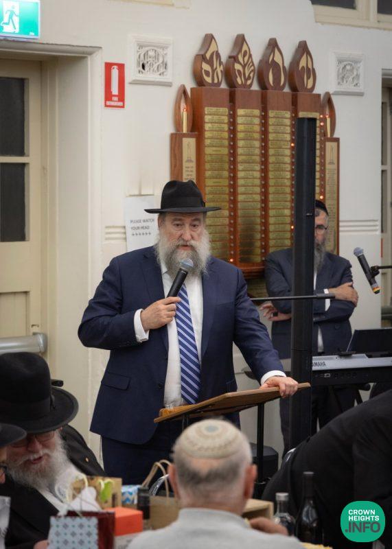 Rabbi Yossi Feldman, Rabbi at Chabad NSW, Rabbi Feldman’s eldest son and the event’s emcee and main organizer, spoke about the challenges his father had faced and how Hashem helped him to overcome them through faith and trust. He recalled the Rebbe’s assurance to Rabbi Feldman that his parnassah (livelihood) would come “like the manna from heaven.” He also mentioned how Moshe Rabeinu only started his mission at the age of 80, and that every Shliach has a spark of Moshe in them.