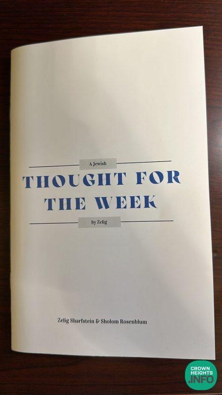 In the leadup to Zelig’s bar mitzvah, Rabbi and Mrs. Sharfstein together with some family members, prepared a softcover book featuring the weekly parsha articles based on Zelig and Sholom’s study sessions. Cheerfully designed with a picture of the pair learning together in person, ‘Thought For The Week’ was given out at the Bar Mitzvah as a testament to Zelig’s hard work and dedication, sharing the inspiration with all the guests.