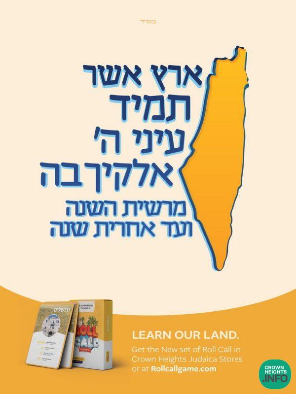 The European version of Roll Call was the first to hit stores, kicking off the series, later followed by Roll Call USA. The latest in the series – Roll Call Israel, is exploring Shluchim in the holy land. Incorporated into the design, is a sentence the Rebbe told over, time and again when discussing the safety of Eretz Yisroel: ״ארץ אשר תמיד עיני ה אלוקיך בה, מראשית השנה ועד אחרית שנה״ with the goal of teaching our children Torahs view and the Rebbes outlook on the safety in our Holy Land.