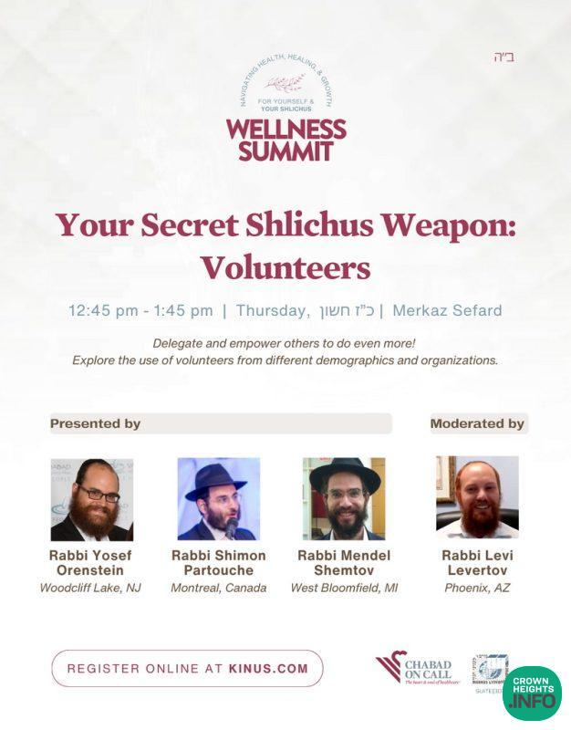 “Together with the content of the sessions, the true power of the Kinus Hashluchim lies in the communal spirit of the Kinus,” says Mrs. Chani Goldberg, Director of Chabad on Call at Merkos 302. “Whether seniors are a key focus of one’s Shlichus or not, this summit allows Shluchim to connect with others who face similar situations and collaborate on ideas throughout the year.”