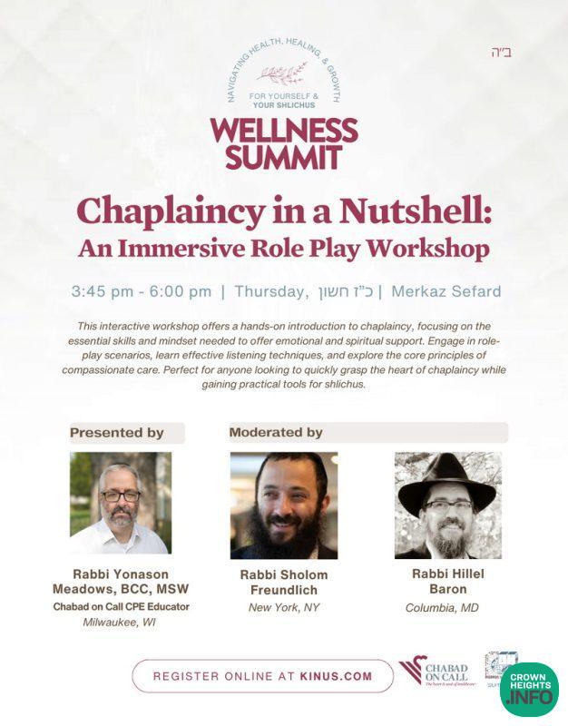 An introductory session on chaplaincy will be led by Rabbi Yonason Meadows, BCC, MSW, Manager of Clinical Pastoral Education Midwest Region and Educator for Chabad On Call’s in-depth ACPE accreditated Chaplain course. Moderated by Rabbis Hillel Baron of Columbia and Sholom Freundlich of New York, the session will provide training in emotional and spiritual support, crucial for effectively supporting seniors in their later stages of life.