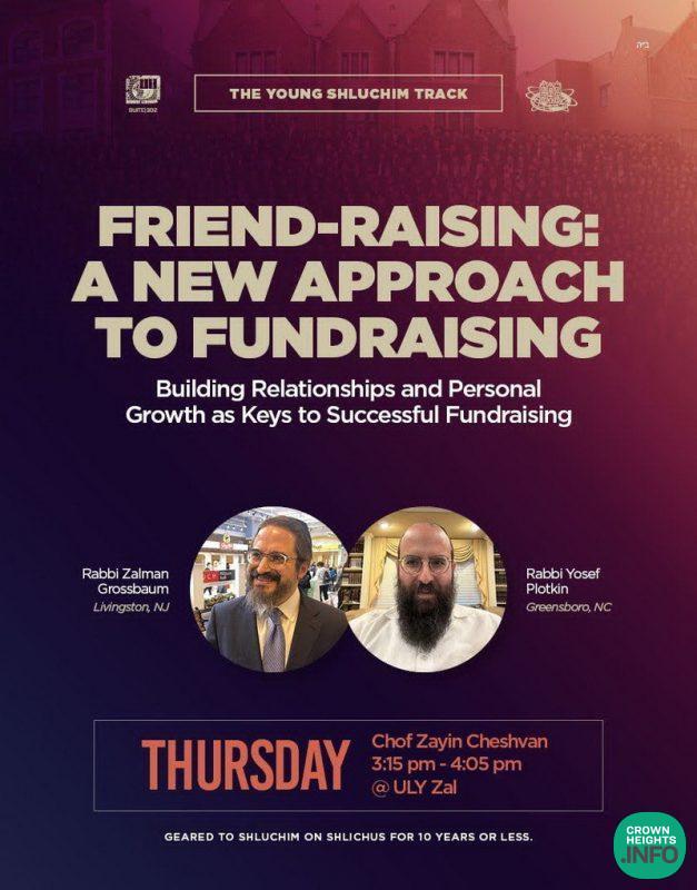 In “Friend-Raising: A New Approach to Fundraising,” Rabbis Yosef Plotkin of Greensboro, North Carolina, and Zalman Grossbaum of Livingston, New Jersey, introduce innovative strategies that focus on building relationships as the key to successful fundraising.