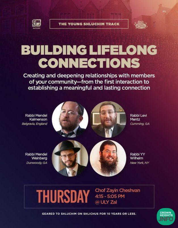 “Building Lifelong Connections” brings together Rabbis Mendel Kalmenson of Belgravia, England, Levi Mentz of Cumming, Georgia, and Rabbi Yosef Wilhelm of the Upper East Side of Manhattan to explore how to create meaningful relationships with community members from the very first interaction.