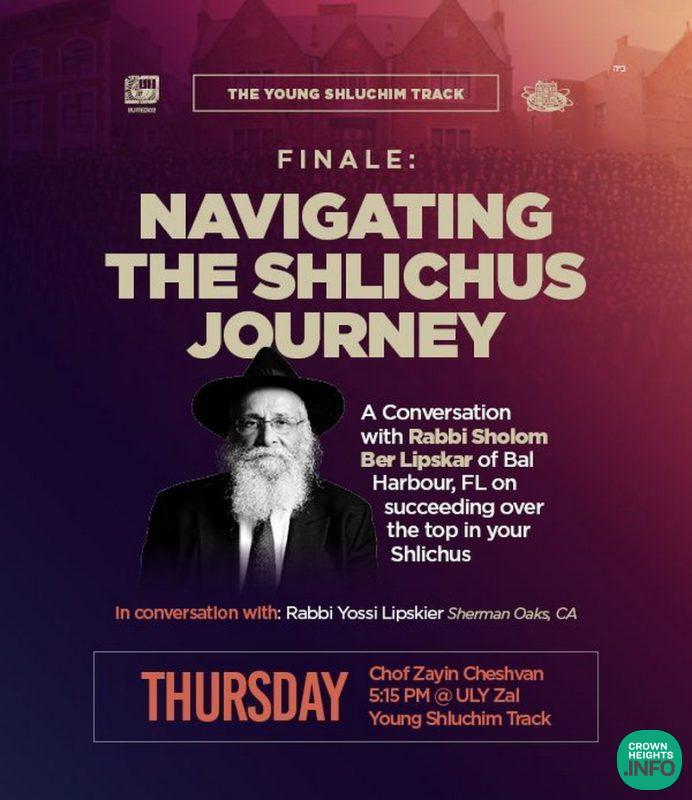 The day energy of the day will culminate with “Navigating the Shlichus Journey,” a conversation with Rabbi Sholom Ber Lipskar of Bal Harbour, FL, offering timeless wisdom on succeeding in their sacred mission. In dialogue with Rabbi Yossi Lipskier of Sherman Oaks, California, Rabbi Lipskar will share insights drawn from decades of experience.