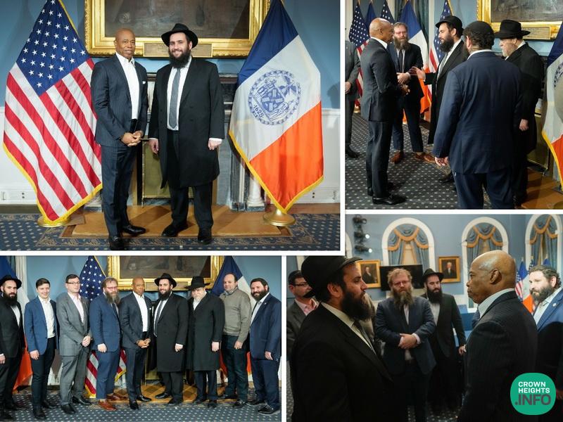 Rabbi Levi Duchman, the Shliach to the United Arab Emirates, made a unique visit to City Hall in New York City and met with Mayor Eric Adams, where Adams expressed condolences on the murder of Rabbi Zvi Kogan HY’D.