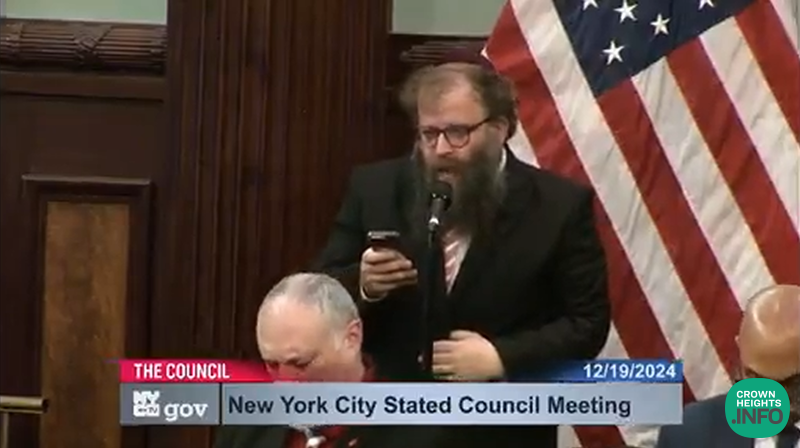 Rabbi Yaacov Behrman gave the invocation at the vote, quoting the Rebbe and highlighting the unity of all people living in New York City.