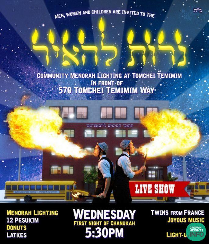 Lubavitcher Yeshiva’s Grand Menorah Lighting at 570 Tomchei Temimim Way is set to dazzle this Chanukah, featuring the much-anticipated return of the Twins from France Show.